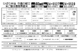 4月より「曜日替わりランチ」500円→530円に変更させていただきます。